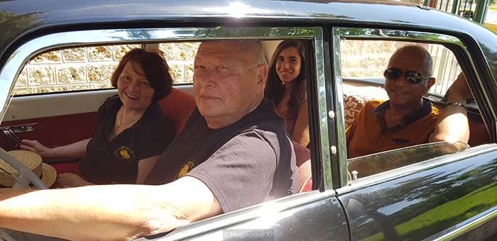 Pour le retour sous le soleil, Rosalie s’est découverte. En cas de pluie, sa tente personnelle est dans le coffre. En effet, ni essuie-glace, ni vitres latérales, Rosalie est un modèle calèche.