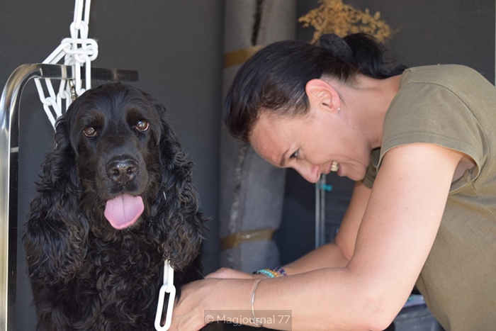Dans la famille, on est éleveur de bichons maltais : « On cherchait un toiletteur car les salons ont fermé les uns après les autres sur Lagny. C’est mon fils qui m’a dit : pourquoi tu ne ferais pas ce métier maman ? ». Hôtesse de l’air pendant 27 ans, habituée à une clientèle VIP, Chantal, du haut de ses 45 ans, était à mille lieux d’envisager une telle reconversion. « J’ai fait deux jours de stage chez un toiletteur puis j’ai suivi une formation d’un an à l’institut Bonaparte à Paris avant de m’installer. Je ne pensais pas que ce serait aussi difficile, mais ça m’a plu tout de suite. Pour pouvoir exercer, il faut que l’année de stage soit validée et certifiée par un toiletteur et les formateurs sont stricts. En même temps, c’est un métier complexe car il faut gagner la confiance des clients. Je comprends qu’on ne veuille pas confier son animal à n’importe qui ». Sa spécialité est le cocker.