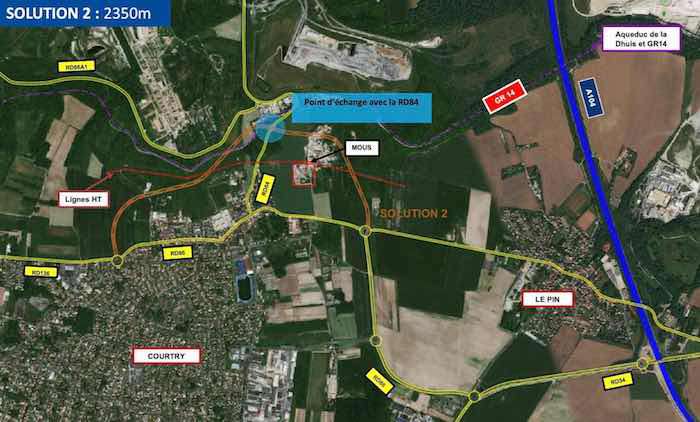 La route départementale va contourner Courtry par le nord, sur une distance de 2 350 mètres. Elle sera plus éloignée des habitations par rapport au tracé présenté lors de la première réunion publique. Elle répondra aux besoins du trafic routier qui, selon les estimations, s’accentuera de 27 % en 2035, dans les rues du Général de Gaulle et du Général Leclerc, en partie dû à l’accroissement démographique, économique et immobilier de la ville. « La limitation de vitesse à 70 km/h sera adaptée à la pente importante empruntée particulièrement par les camions » souligne Claude Lashermes.