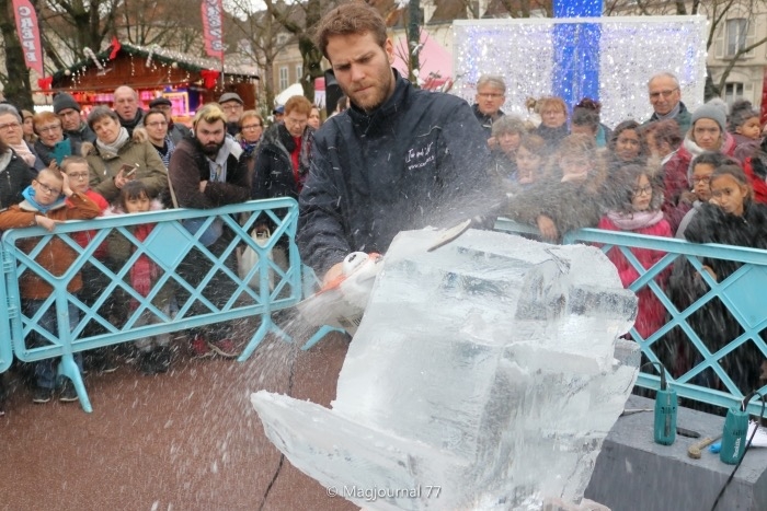 Pour assurer le show, samedi, Emmanuel a réalisé un lutin en une heure et demie devant un public attentif. Emmanuel, la trentaine, explique : « Je viens de réaliser une œuvre qui devrait fondre en une nuit et une journée étant donné la température actuelle à Meaux ».