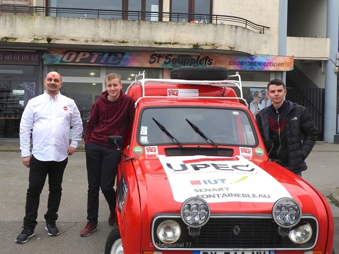 La 4L rouge de Louis et Maxime est enfin prête pour le départ de l’une des plus importantes courses humanitaires.Louis, un des deux coéquipiers, habitant de Saint-Pathus, explique : « Il s’agit d’un raid humanitaire pour les étudiants. Nous devons nous rendre au Maroc pour aider l’association ‘Les enfants du désert’. » L’étudiant en électricité etinformatique industrielle à Fontainebleau a proposé à Maxime, habitant Oissery, son ancien camarade de classe, de participer à la course à ses côtés : « Nous nous connaissons depuis le collège Jean-des-Barres. »