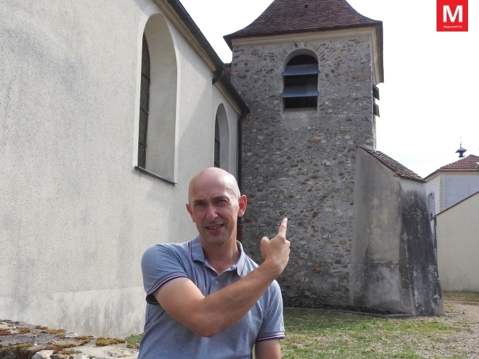 La cloche de l’église de Chanteloup-en-Brie date du XIIIe siècle et serait une des plus anciennes de la région. Le maire, Olivier Colaisseau, a escaladé le clocher pour la photographier, dimanche 9 août.
