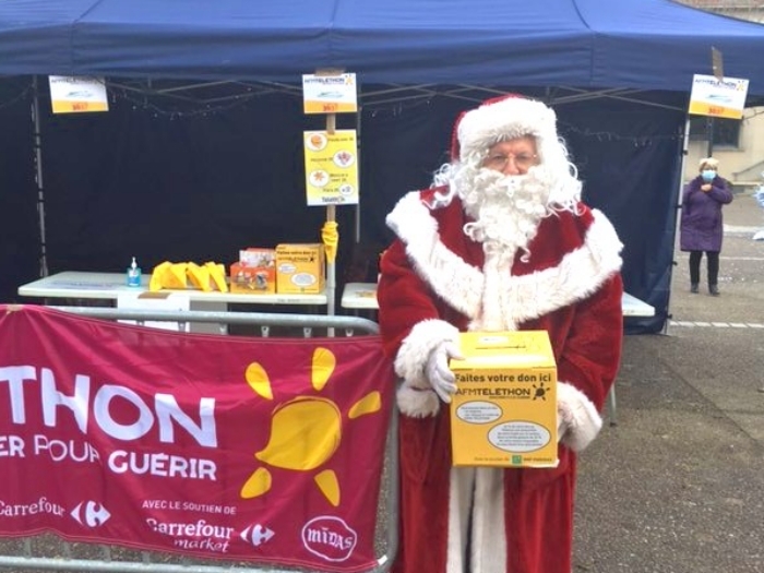 Le Père Noël est venu aider les bénévoles du Téléthon qui récoltaient des dons pour la recherche, place des Prieurs, à Dammartin-en-Goële, samedi 5 décembre.