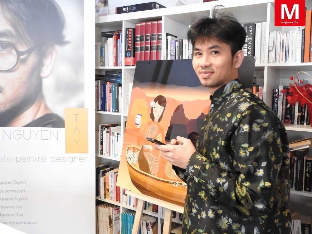 Ce n’est pas la première fois que l’artiste collabore avec des marques. En 2018, Nguyen Tay, a signé le visuel de la bouteille Vietnam pour la marque Heineken. L’année suivante, on a découvert le coffret de gâteaux de lune qu’il a conçu pour l’enseigne Paris-Store. Pourtant, le dessin numérique n’est pas son domaine de prédilection : « Cela me fait sortir de ma zone de confort et me donne des défis à relever. » L’artiste a même peint sur des plaques de chocolat de Cédric Tostain, artisan chocolatier de Claye-Souilly.