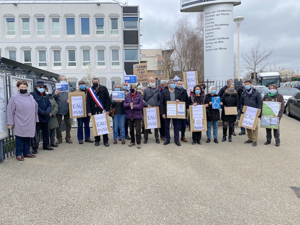 Un collectif de citoyens et d’élus des douze communes de la communauté d’agglomération Paris-Vallée de la Marne a lancé un appel pour réclamer le retour à une gestion publique de l’eau, lors d’un rassemblement, lundi 22 mars.