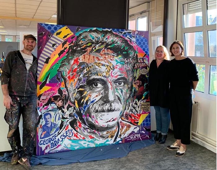 Pour le trentième anniversaire de la médiathèque Georges-Brassens, à Mitry-Mory, le street artiste Jo Di Bona a réalisé une fresque, samedi 9 octobre.
