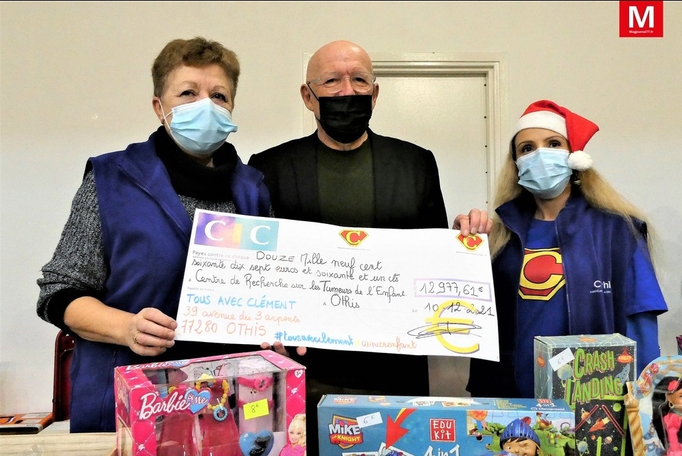 L’association othissoise de lutte contre les tumeurs cancéreuses chez l’enfant et l’adolescent, « Tous avec Clément », a tenu un stand sur le marché de Noël d’Othis, dimanche 12 décembre. Elle a annoncé la remise d’un chèque de 12 977 euros à Gustave-Roussy.